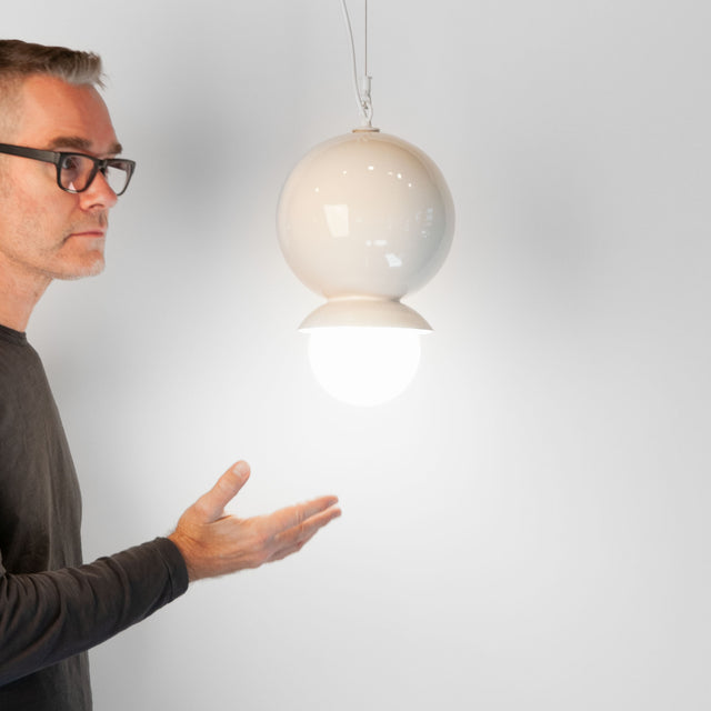 And so on and so forth. Introducing Dot Dot Dot Pendants as a celebration of the harmonic power of color. A single dot of light shines from an omega-shaped opening that is designed to be used solo or in groups. Dot Dot Dot Pendants are handcrafted in stoneware in three styles: Triple Omega, Double Dot Omega, and Single Omega. Available in 8 combinations and 4 single colors or made to order in any of our 17 signature colors.